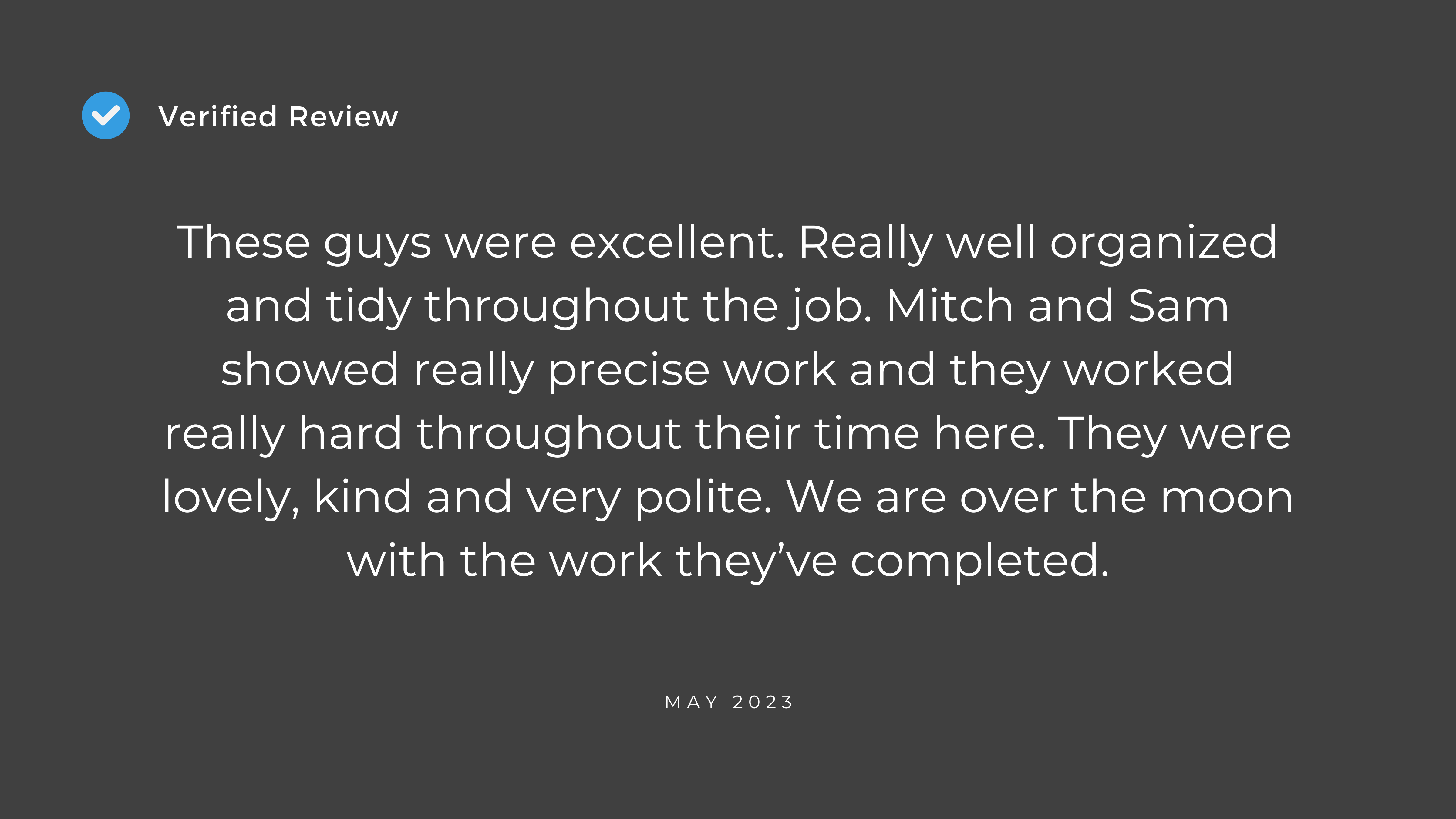 Our reviews speak for themselves! We treat every job as if it were our own home and our dedication to customer satisfaction is reflected in the glowing testimonials we’ve received from our clients. We are committed to delivering quality workmanship and exceptional service, no matter the scale or complexity of the project.